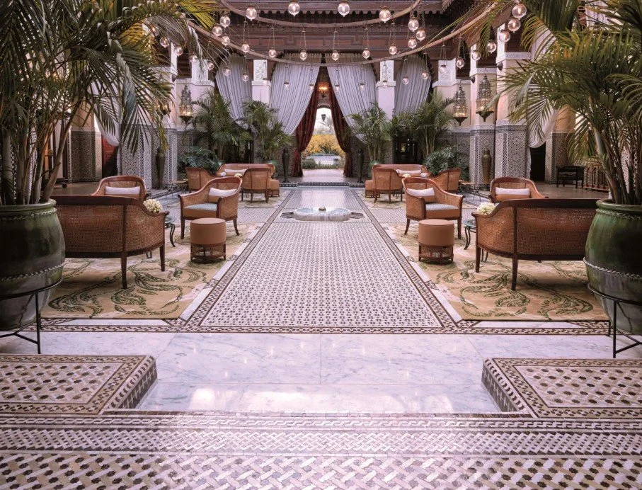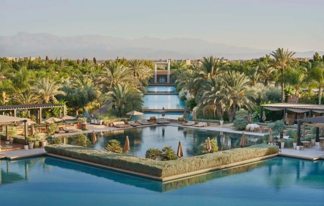 La Mamounia is a legendary palace set within centuries old gardens at the edge of the Medina, where Moroccan craftsmanship, grand scale, and a deeply atmospheric sense of place define every moment. Rooms and suites blend classic Moorish detail with refined contemporary comfort, many overlooking the gardens, pool, or the Koutoubia minaret, creating a cocooned retreat from the city’s energy. Life here unfolds through orange tree lined walks, long afternoons by the iconic pool, and restorative rituals in one of Marrakech’s most celebrated spas, where hammams and serene interiors encourage true pause. The mood shifts seamlessly from tranquil daytime elegance to softly glamorous evenings, with lantern lit courtyards and salons setting the scene. Ideal for clients seeking timeless luxury, cultural depth, and an address that embodies the soul of Marrakech, La Mamounia offers an experience that feels both historic and irresistibly alive.
