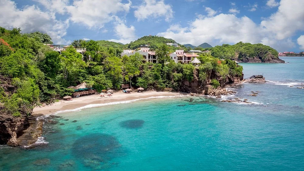 Cap Maison Resort & Spa is a romantic luxury retreat perched on a cliff overlooking the Caribbean Sea on St. Lucia’s northern coast. Combining Spanish-Caribbean architecture with elegant tropical style, it offers spacious suites and villas, many with private pools, rooftop terraces, and panoramic ocean views. Guests can enjoy fine dining at The Cliff at Cap, unwind with tailored treatments at the spa, or sip sunset cocktails at the resort’s secluded beach bar. With its intimate ambiance, refined service, and stunning coastal setting, Cap Maison delivers a sophisticated and soulful island escape.
