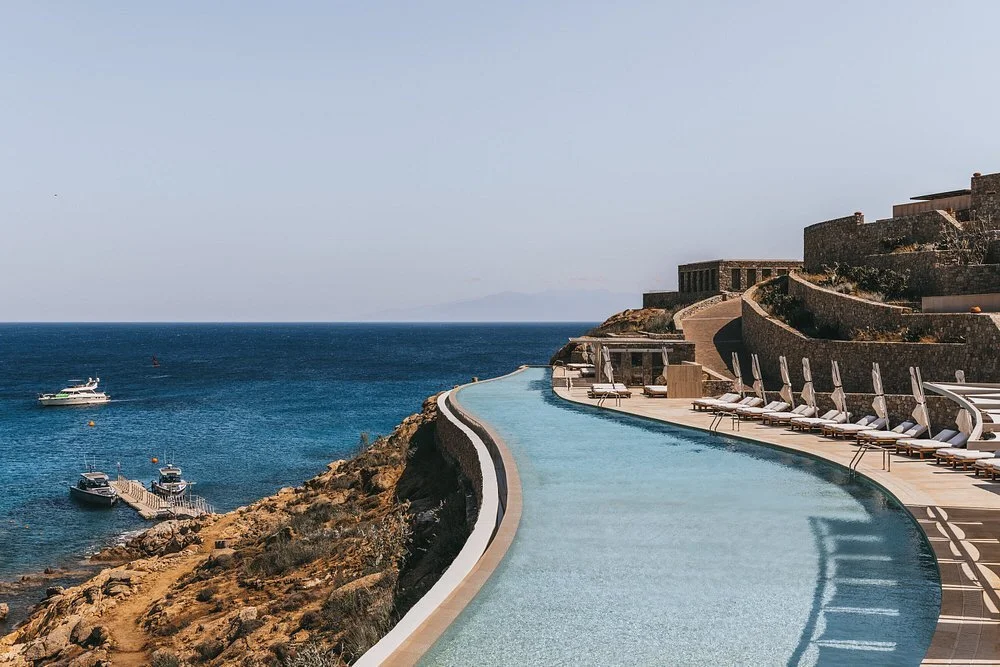 Alighting the cliffs above the Aegean, Cali Mykonos offers a refined retreat where minimalist design, dramatic scenery, and discreet sophistication meet. Each of the resort’s villas cascades toward a private cove, blending Cycladic architecture with clean modern lines and natural stone. Interiors are serene and airy, opening onto terraces with infinity pools that seem to merge with the sea. Days revolve around elegant simplicity—yoga at sunrise, bespoke Mediterranean dining by the water, or quiet moments on the private beach. Seamlessly balancing seclusion with world-class service, Cali Mykonos embodies a modern interpretation of island luxury, where every detail feels purposeful, personal, and profoundly tranquil.
