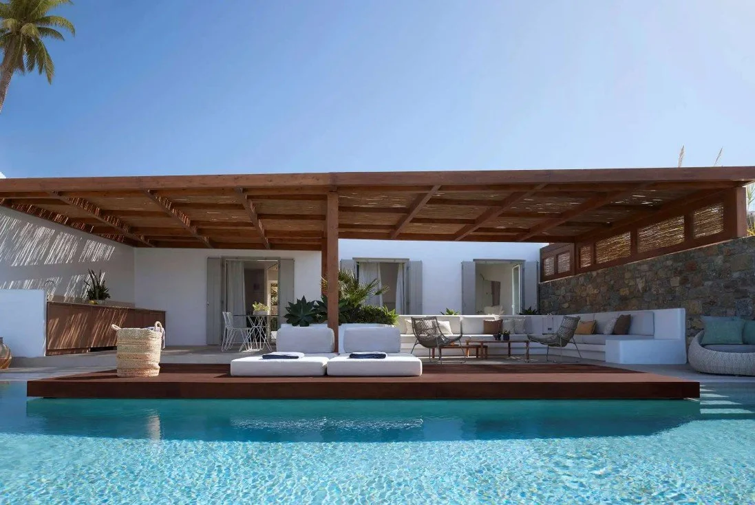 Near the shimmering waters of Megali Ammos Bay, Bill&Coo delivers an intimate, sun-drenched escape that redefines island luxury. The spacious suites feature natural finishes, generous terraces or private pools, and sweeping sea views that draw the Aegean into every moment. Within this elegant setting you’ll find a culinary journey spanning fine dining at YĒVO, beach-club relaxation at Beefbar Mykonos, and mixology at the Sunset Lounge—all framed by the island’s iconic golden light. With the only Valmont Spa on Mykonos and exclusive private-villa options, Bill&Coo blends barefoot ease with high style to create a sophisticated sanctuary just a short stroll from Mykonos Town.