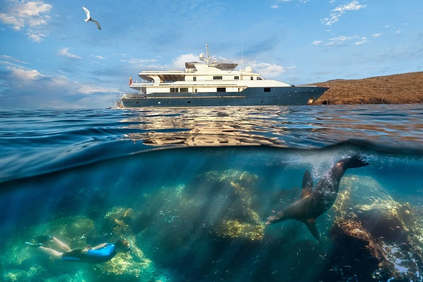The ultra-luxury expedition vessel Hermes Galapagos Catamaran redefines Galapagos cruising through elegance, intimacy, and contemporary design. Hosting just 20 guests, it offers personalized service with a nearly one-to-one crew-to-guest ratio and features 12 spacious suites with private balconies, jacuzzies, and floor-to-ceiling windows. Guests can enjoy curated daily excursions such as snorkelling, kayaking, paddleboarding, and guided island hikes, returning each evening to refined Ecuadorian and international cuisine. Elegant lounges, an observation deck, and open-air dining areas provide relaxing spaces between adventures. With its sophisticated design, exceptional comfort, and immersive exploration, Hermes Galapagos Catamaran delivers an exclusive and unforgettable journey through the enchanted islands.